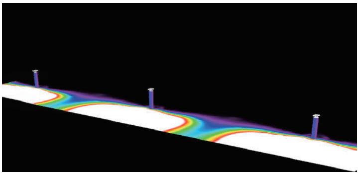 Resultado típico con una separación de 10 m en un camino de 4 m de ancho, diseñado para cumplir con las clases de iluminación P