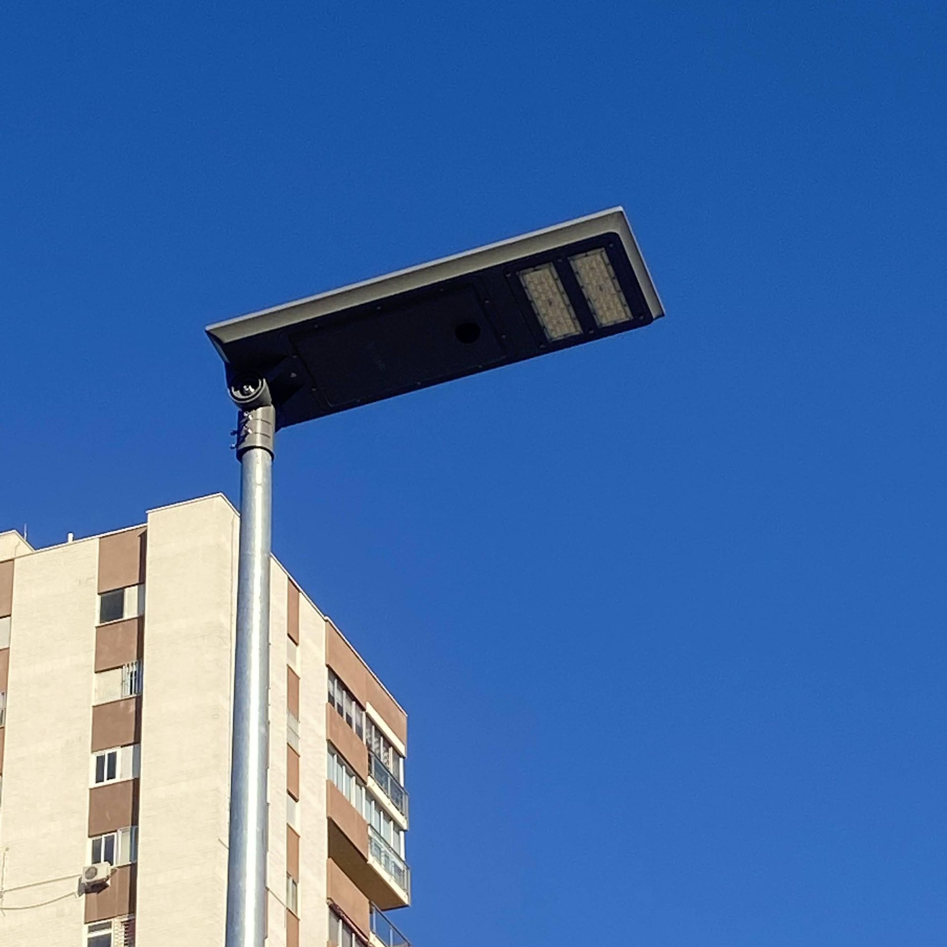 Luminaria vial solar BIO. Alta luminosidad con un gran rendimiento. Panel solar monocristalino integrado en la parte superior de la luminaria BIO. Programación específica adaptada a la localización. Iluminación a coste 0, instalación fácil y diseño moderno.