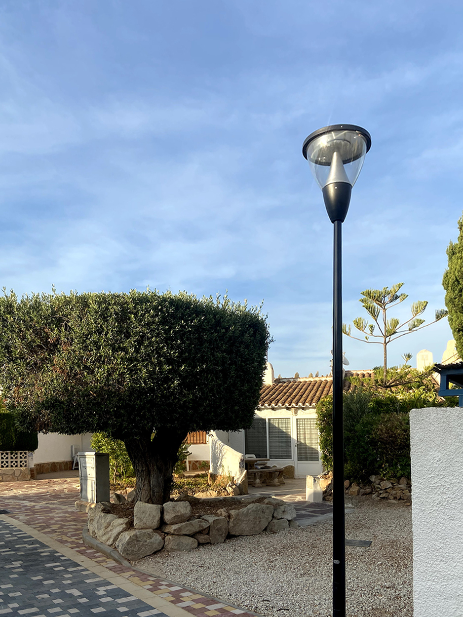 Existen muchas zonas urbanas con problemas de corriente eléctrica, por su ubicación geográfica o por un inapropiado circuito. Es la situación que solucionamos en 2020 en una urbanización en la que la corriente eléctrica no llegaba a ciertos lugares. Nuestro cliente quería iluminar el exterior y entorno de la urbanización con una estética elegante y sencilla, y solucionar los problemas de cortes de luz que sufrían algunas zonas de la urbanización de una manera fácil y sencilla, sin instalación de cableado y sin necesitar apenas herramientas.