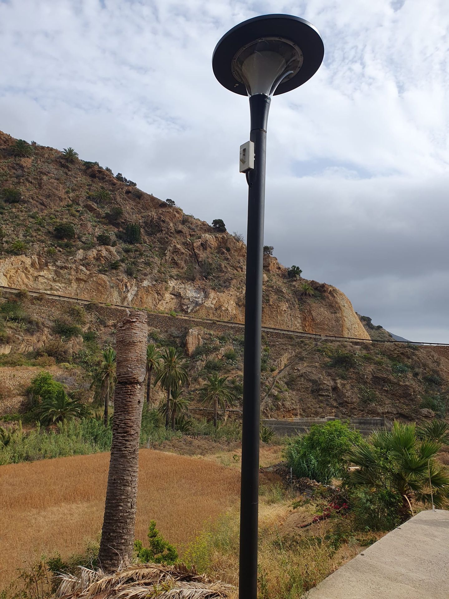 Luminarias solares modelo PAMELA: colocadas en puntos estratégicos para aportar iluminación más amplia y reforzar zonas críticas.